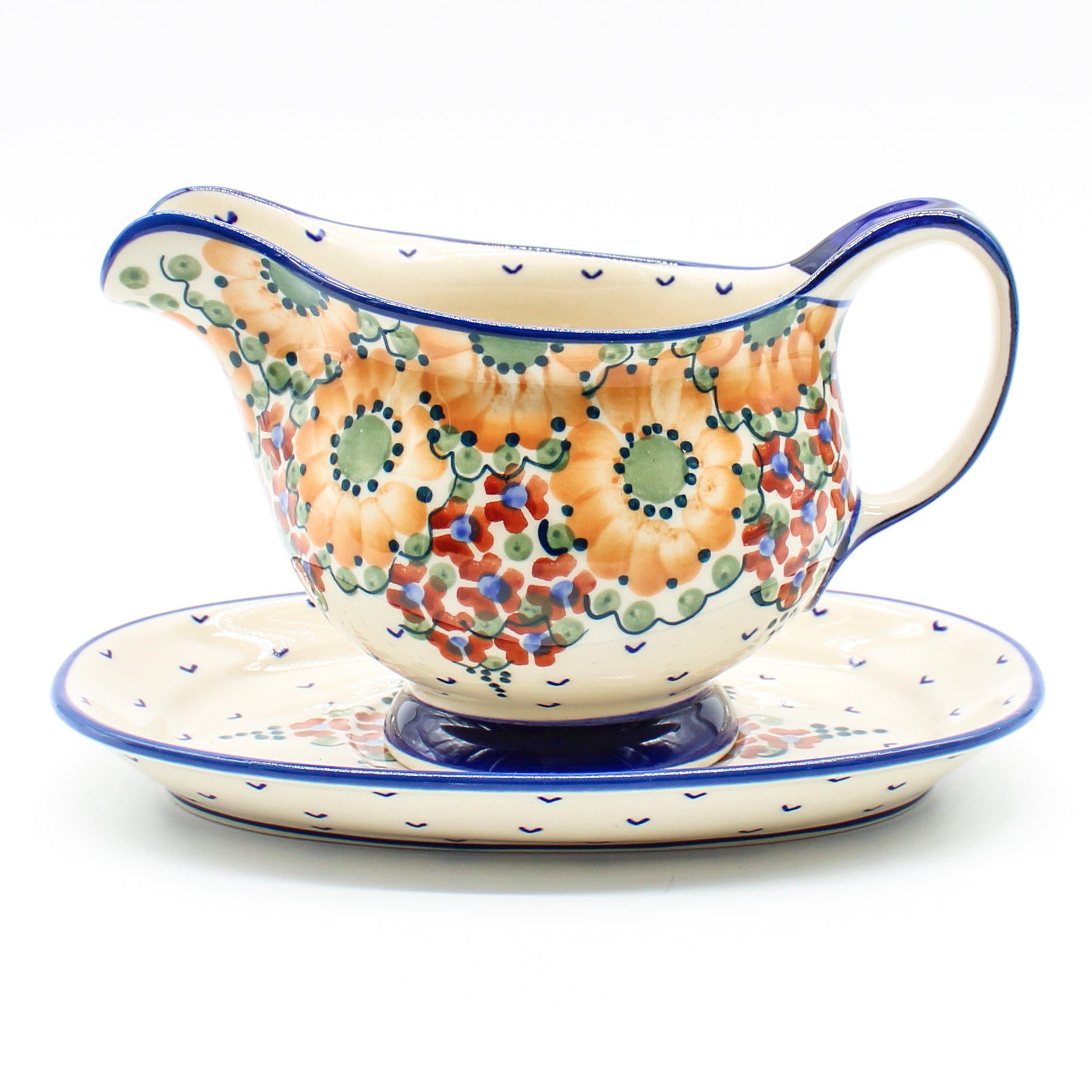 Polish Pottery Gravy Boat w/Tray 1 qt (S-107)