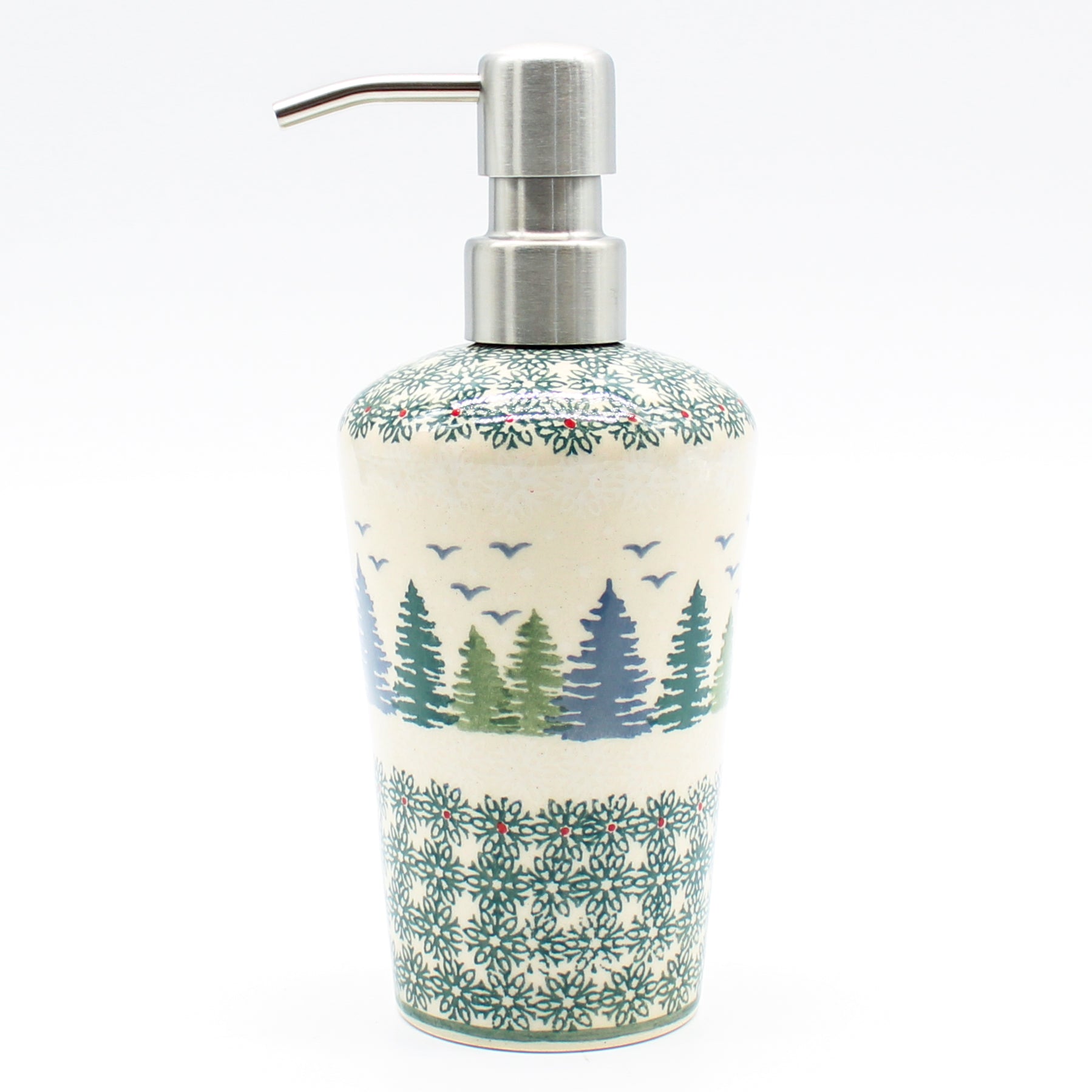 Polish Pottery Soap Dispenser (B-009) Beautiful in any bathroom, or kitchen Dimensions Diameter 3 inches Hight 7 inches Features Dishwasher safe Oven safe Microwave safe Freezer safeDimensions (in inches):