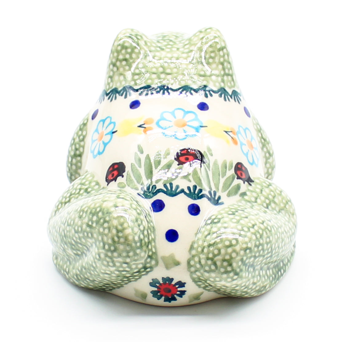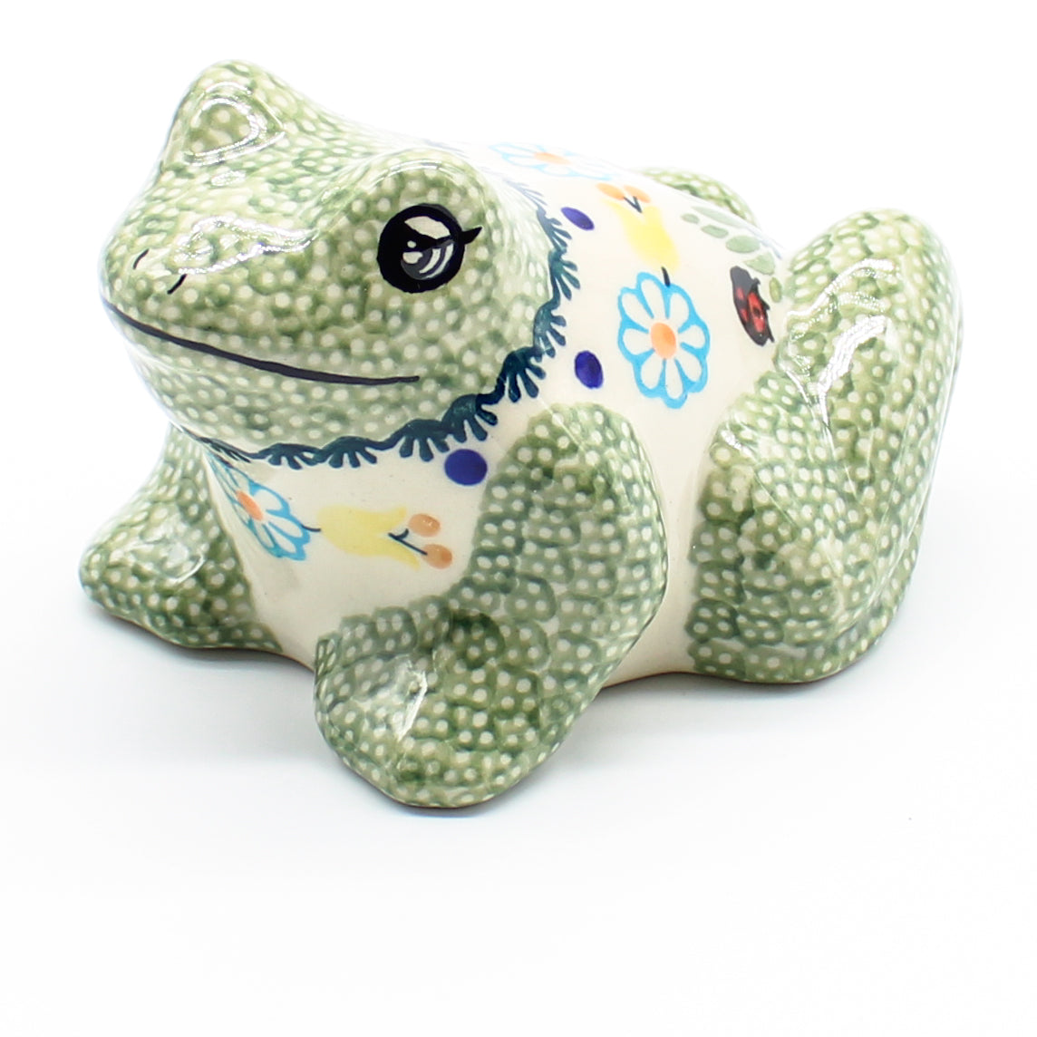 Lg Garden Frog-Miniature in Ladybugs