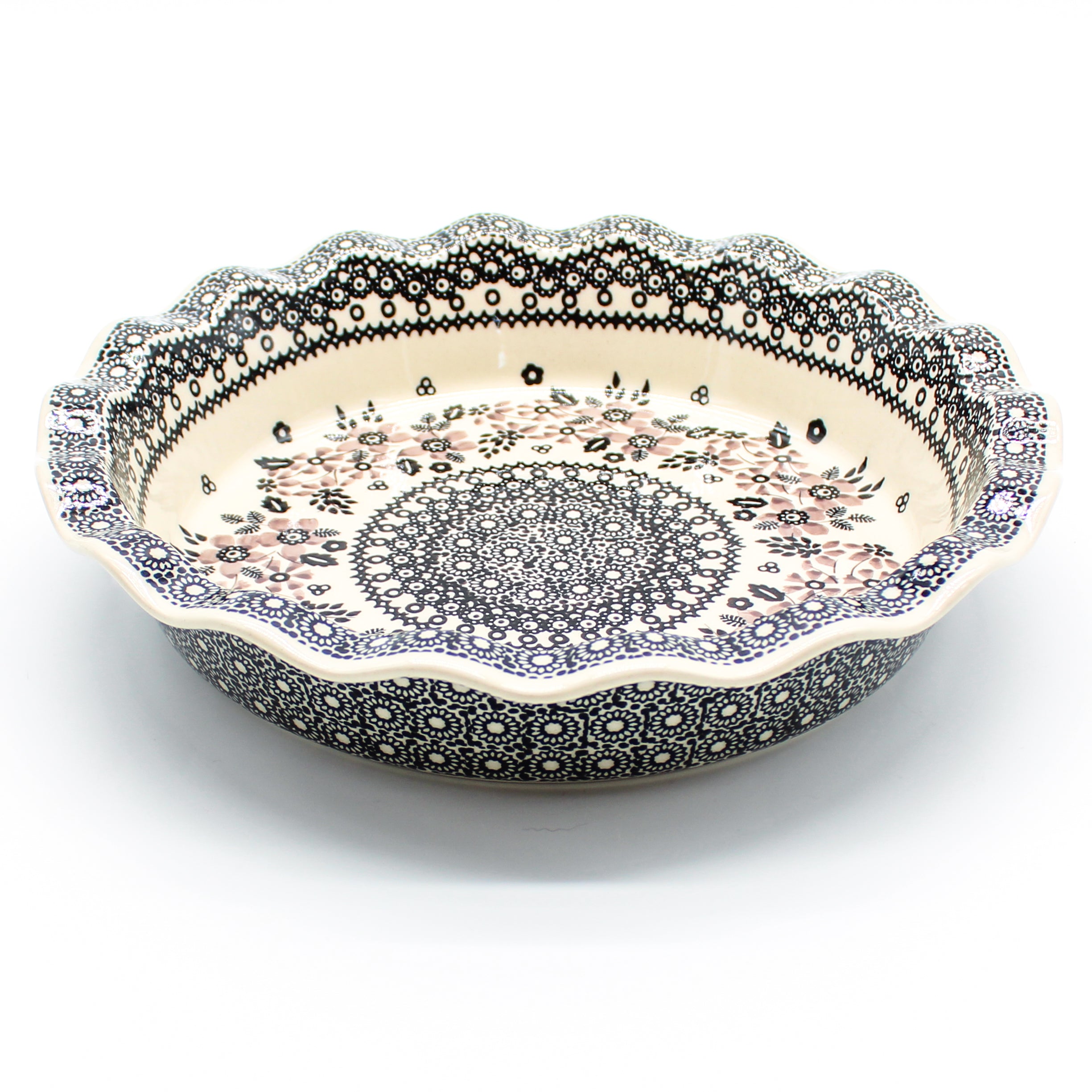 Beautiful round baker with scalloped edge for pies, dips, or serving.