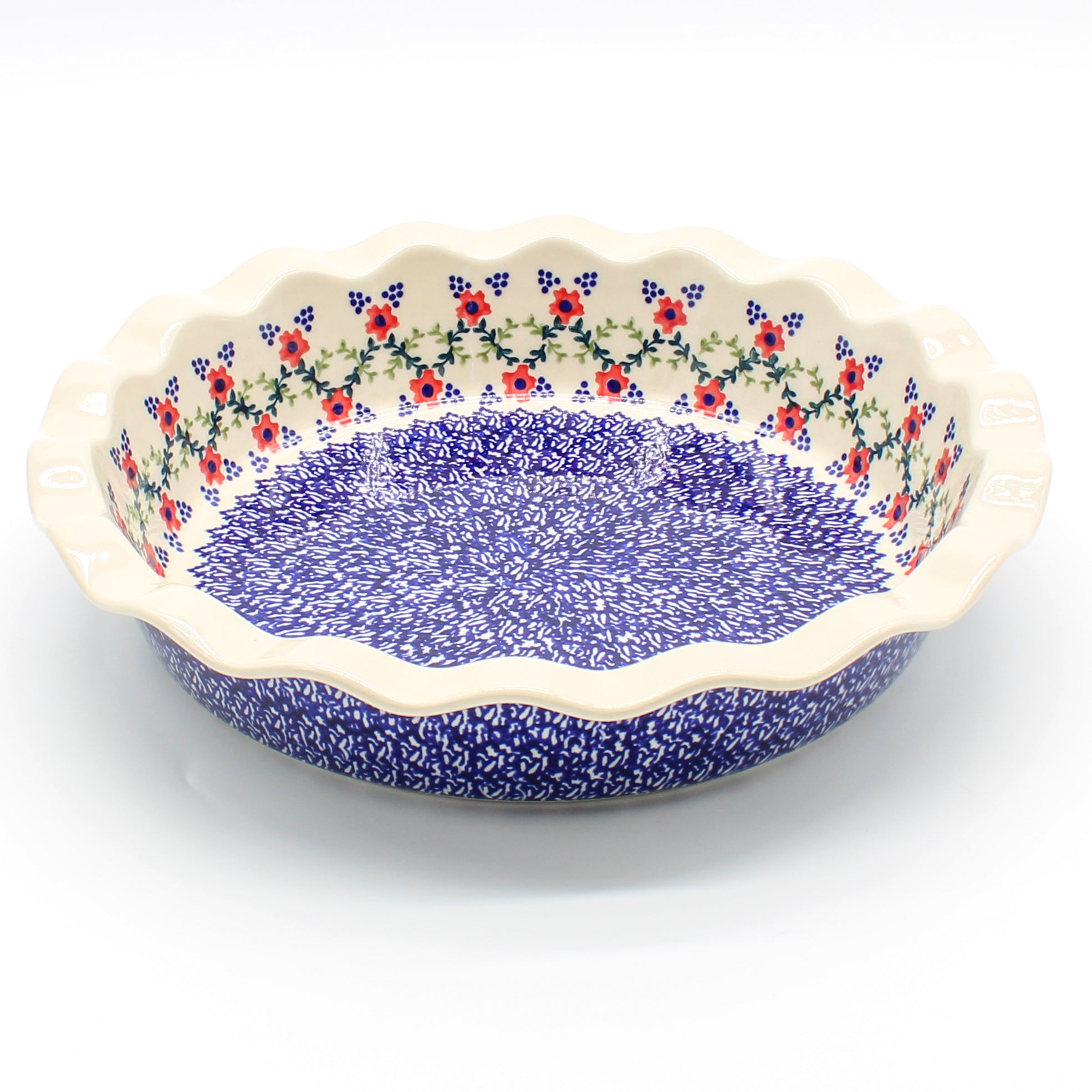 Beautiful round baker with scalloped edge for pies, dips, or serving.