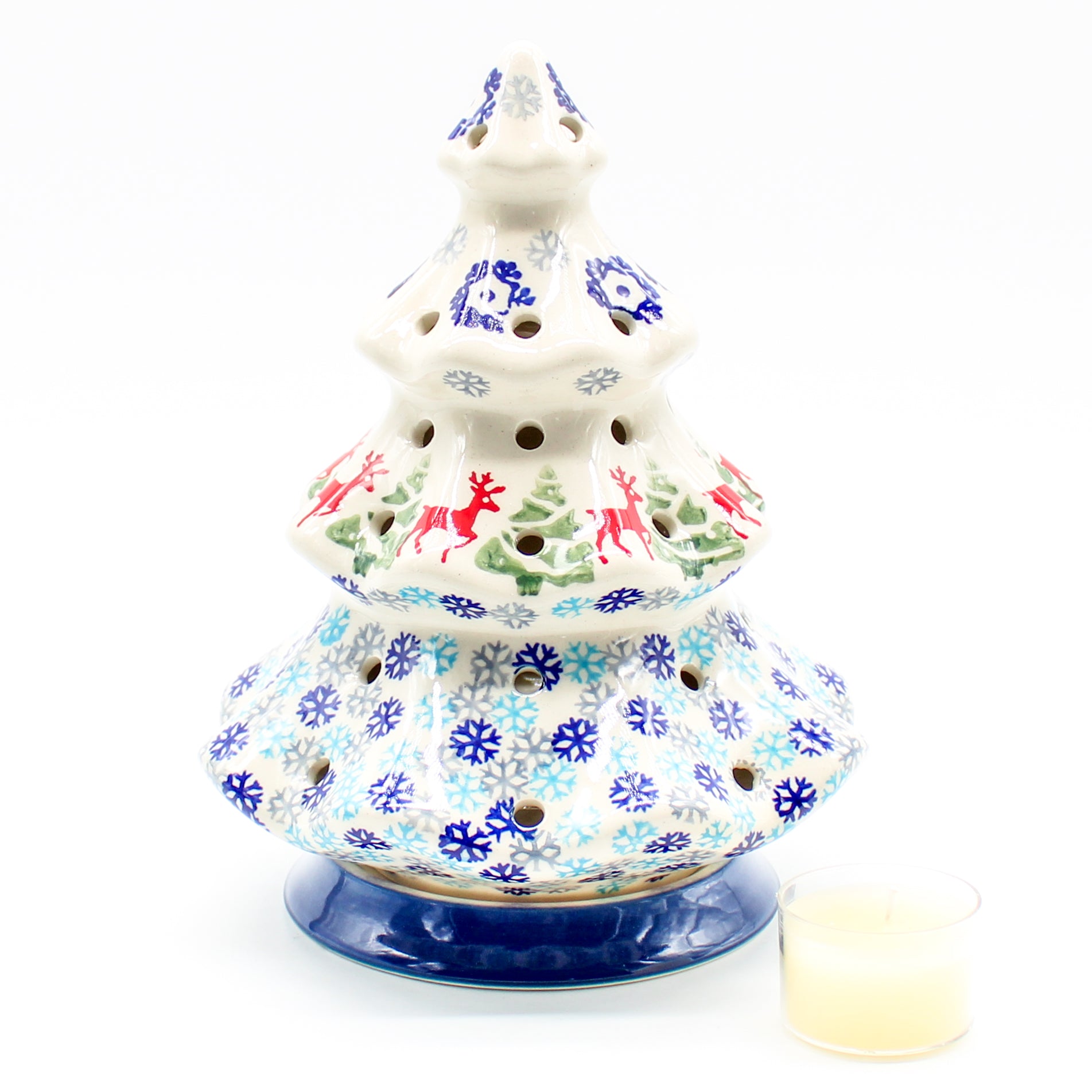 Decorate for the holidays with our whimsical tree! Perfect for every room, by a fireplace, or in a window, these hand-shaped and hand-painted trees will look gorgeous in your home! Each piece is hand-painted in Boleslawiec, Poland and is lit from within with a real or battery tealight.