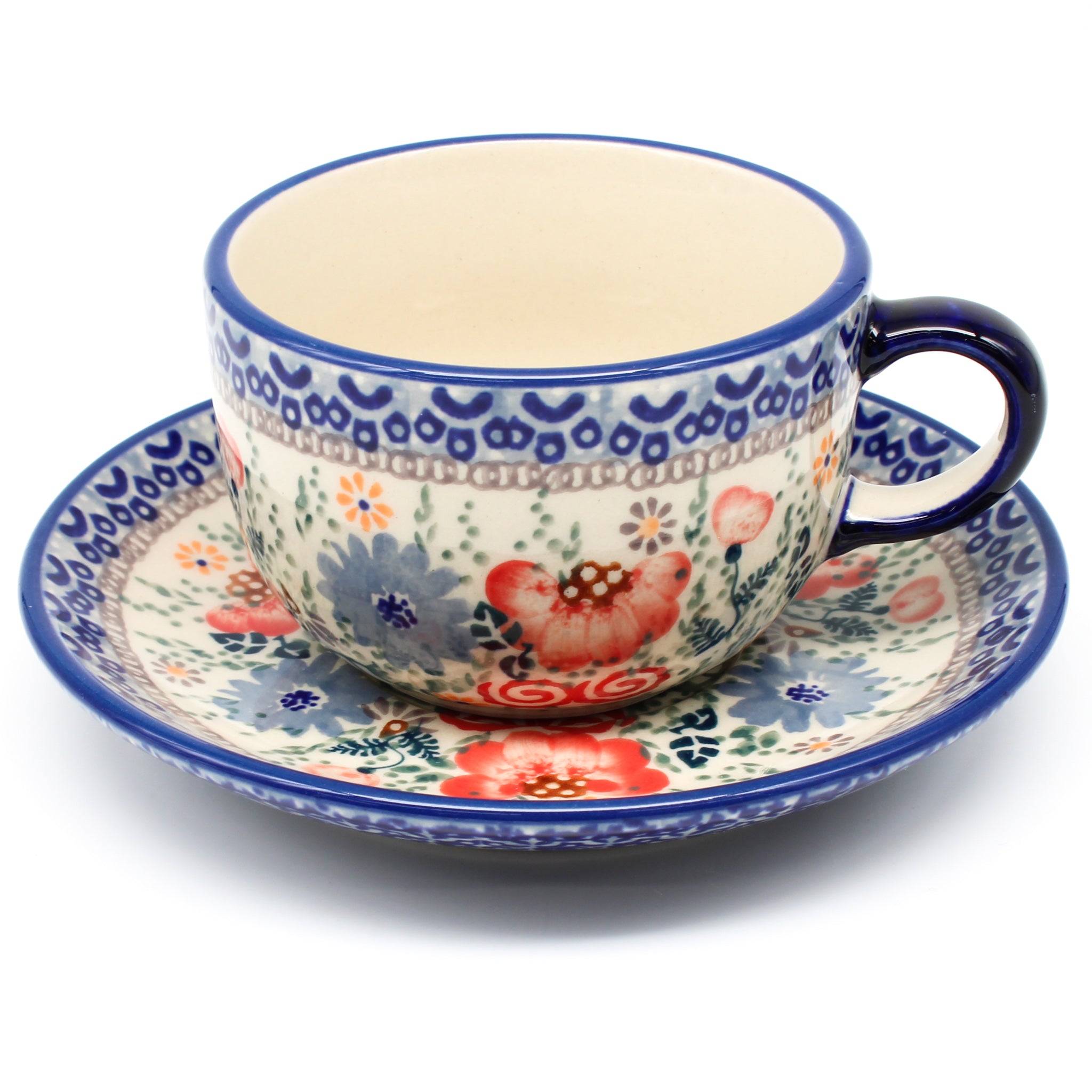 Polish Stoneware Cappuccino Cup w/Saucer 6.5 oz