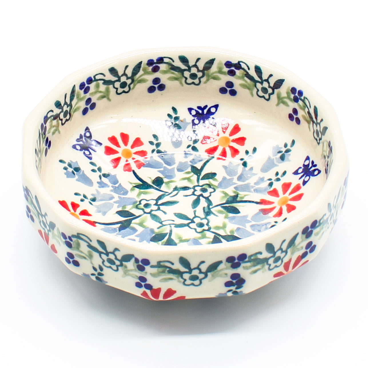 Polish Pottery Shallow Little Bowl (M-058) Great for candy Dimensions Volume 12 oz Features Dishwasher safe Oven safe Microwave safe Freezer safe Dishwasher safe Oven safe Microwave safe Freezer safeDimensions (in inches):
