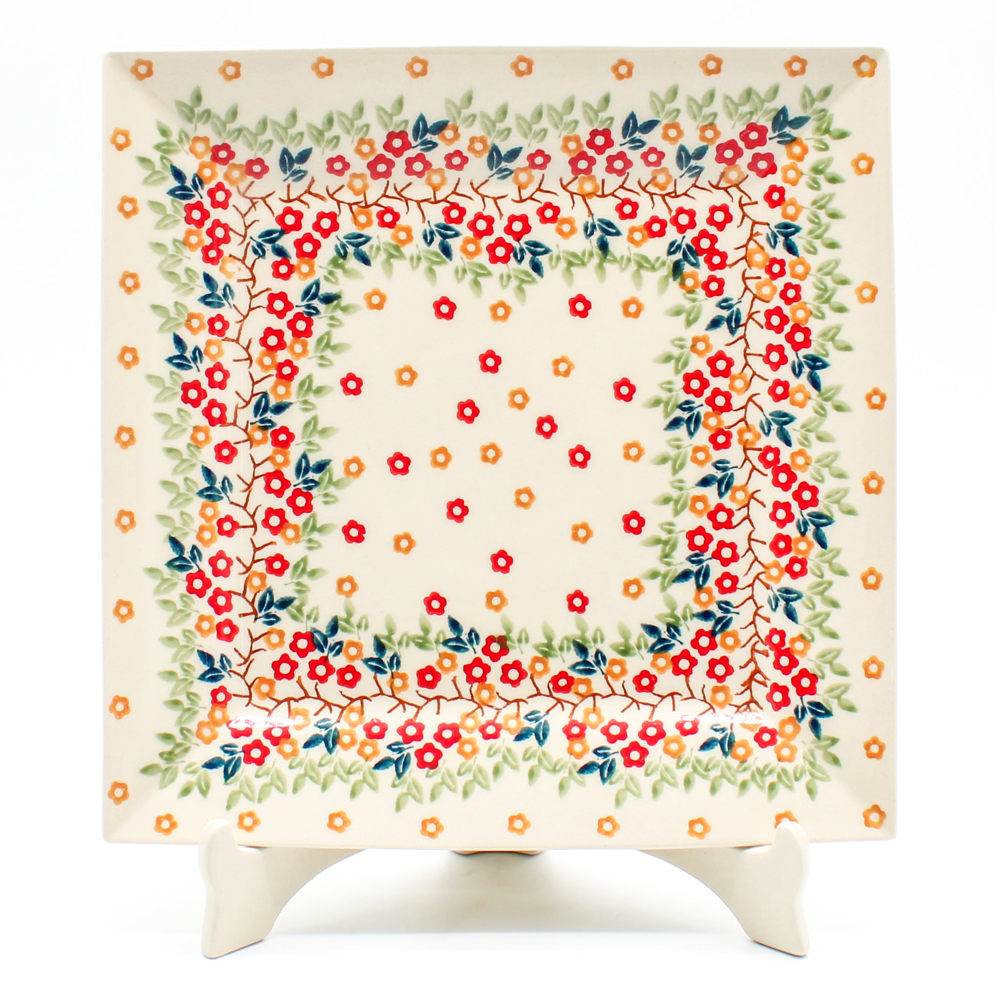 Polish Pottery Square Dinner Plate 9.25" (T-146) Square shape. Perfect as a dinner plate, or as a small platter Dimensions Diameter 9.25 inches Features Dishwasher safe Oven safe Microwave safe Freezer safeDimensions (in inches):